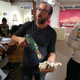 Rencontre avec Walter PATERNA, artiste travaillant l'argile. Encore Merci à lui et à bientôt à l'E2C pour que les stagiaires apprennent à peindre leurs œuvres.